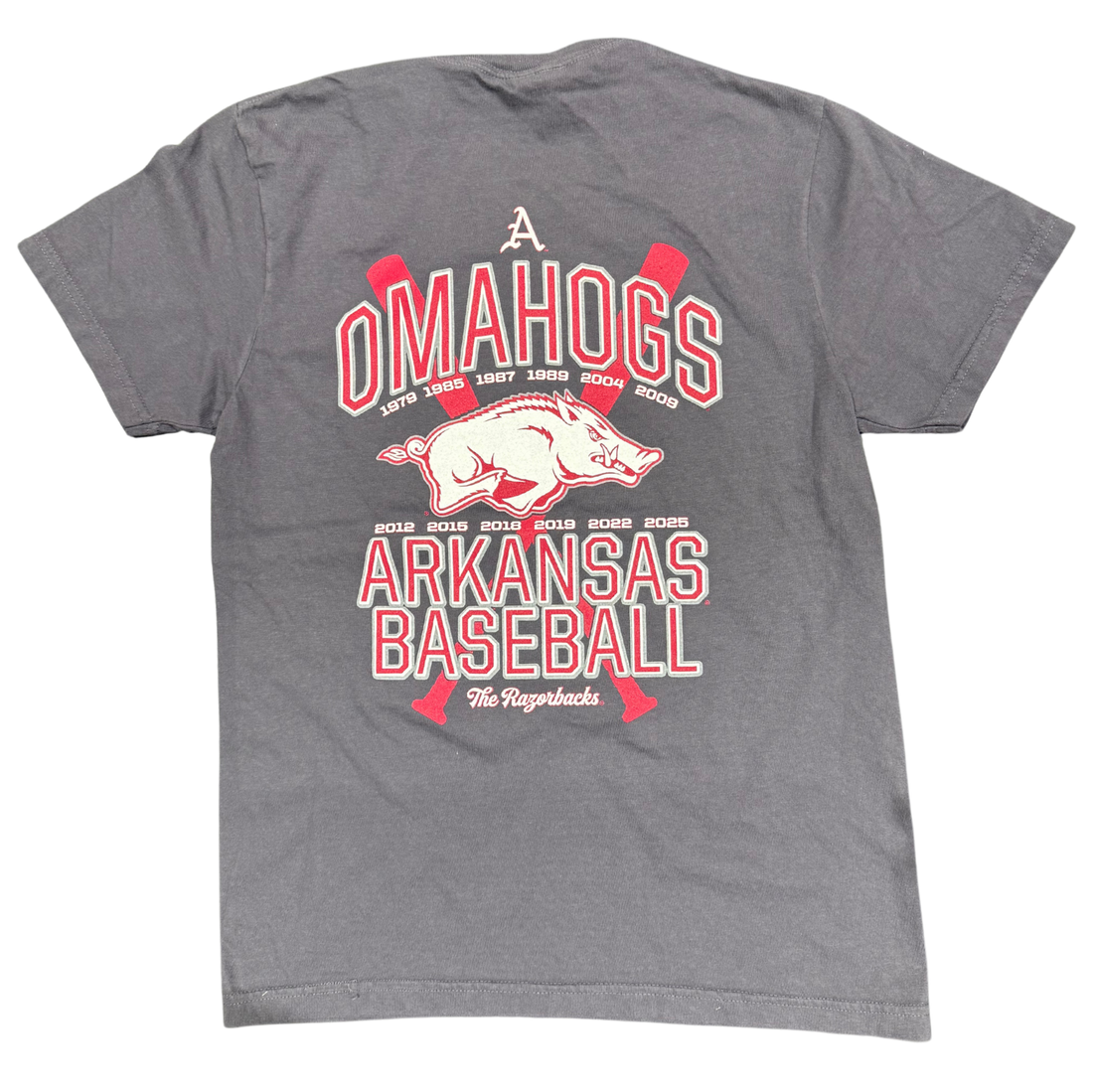 A Razorback classic, now updated for the 2025 run to Omaha.Our OmaHogs Arch '25 design...