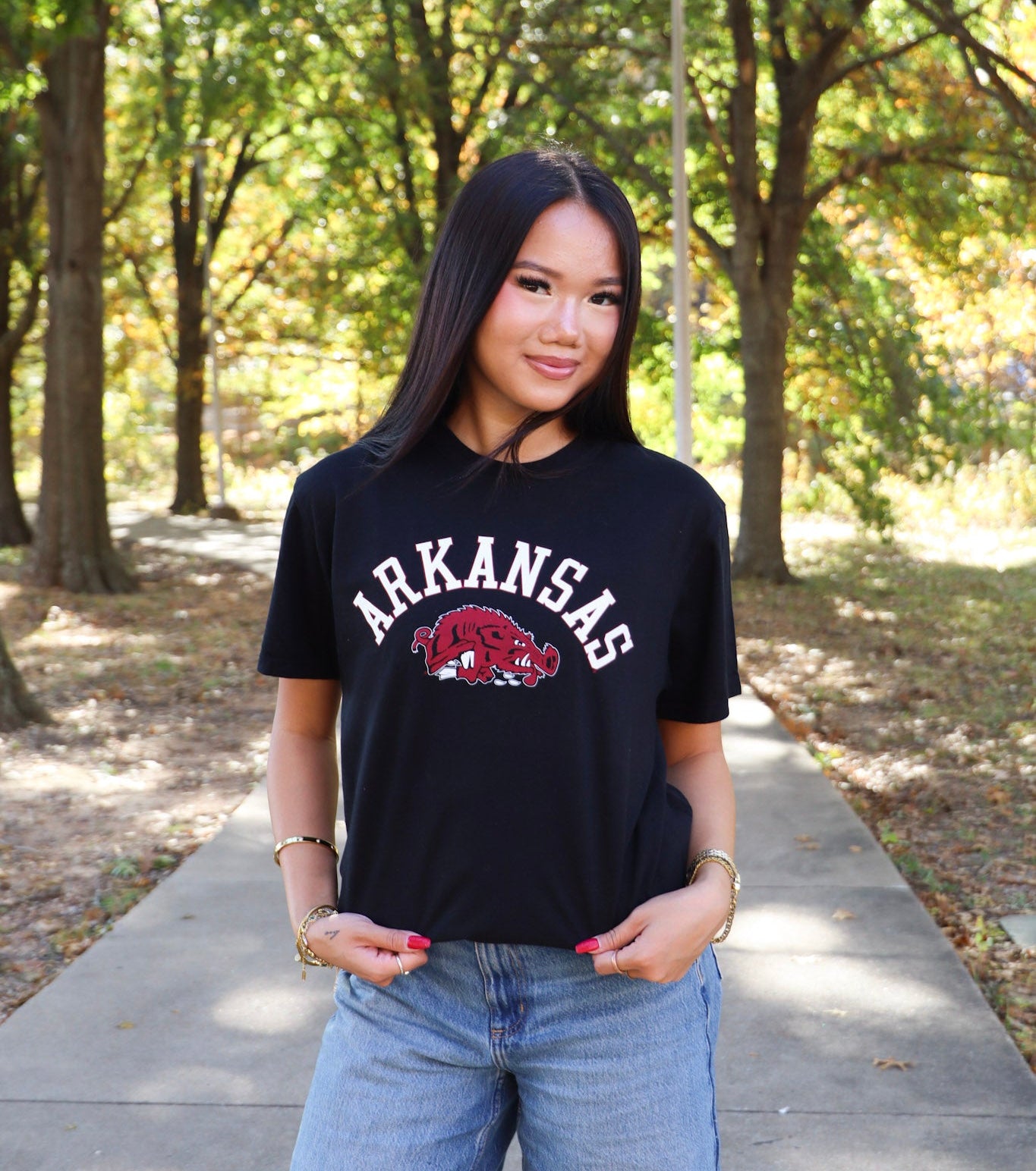 Step back into the glory days of Razorback basketball with Barnhill Arch. Inspired by the iconic era of Barnhill Arena, this vintage design pays tribute to the hardwood history that shaped Arkansas hoops. Printed on our lighter-weight Tri-Blend tee from the Black Label Collection, it’s made for fans who want the legacy without the bulk — soft, breathable, and ready for every tip-off.