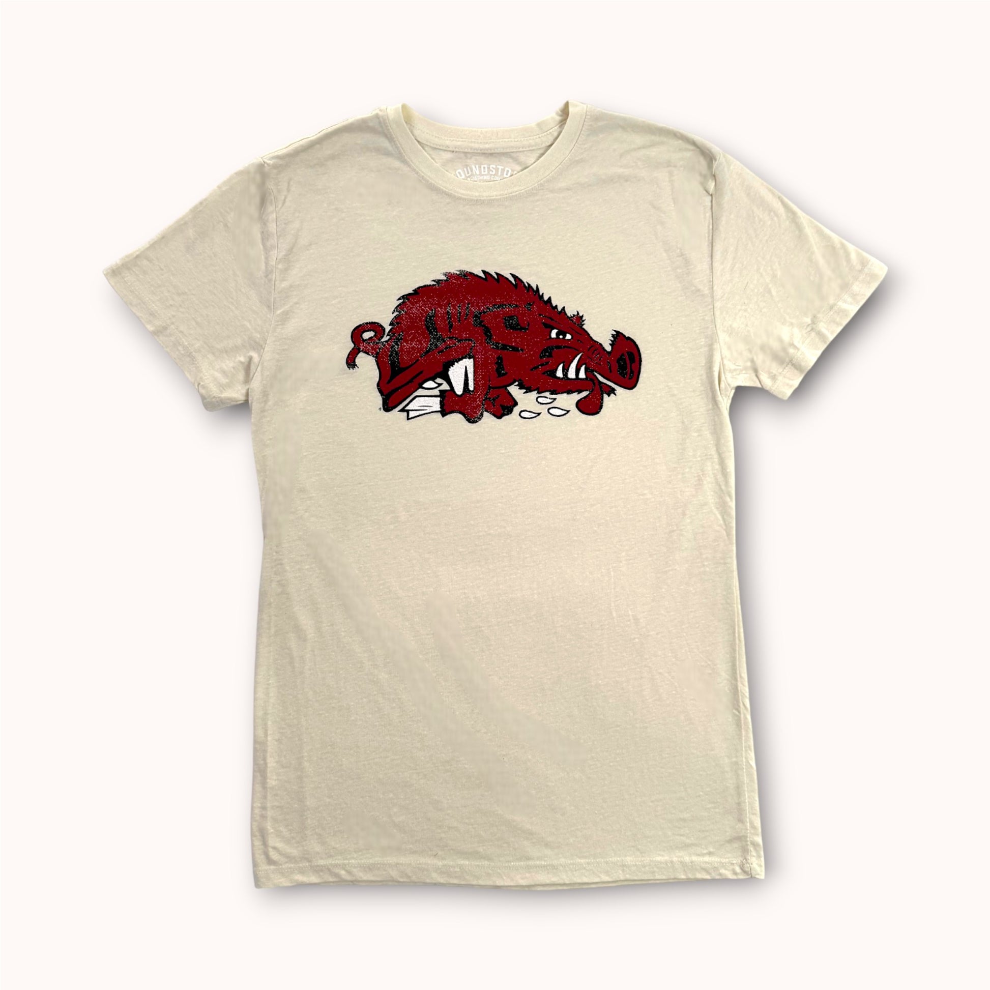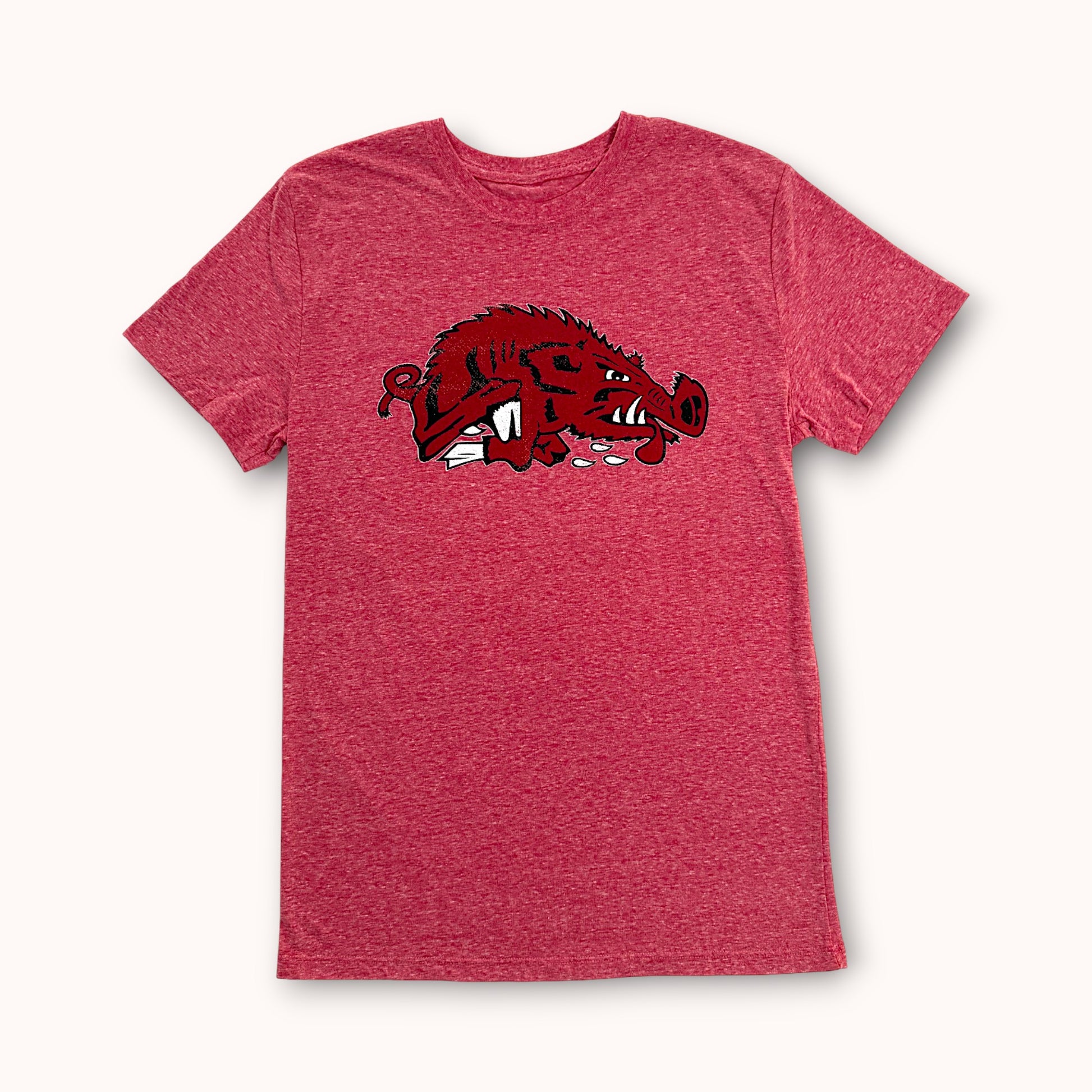 Meet Barnhill Tri — a nod to Razorback basketball history that feels as timeless as it looks. The classic Slobbering Hog carries the pride and grit of generations past while celebrating the current team, printed on a feather-light Tri-Blend tee that moves with you. Soft, breathable, and part of our Black Label Collection, this shirt was made for fans who love their Hoop Hogs — and their comfort — in equal measure.