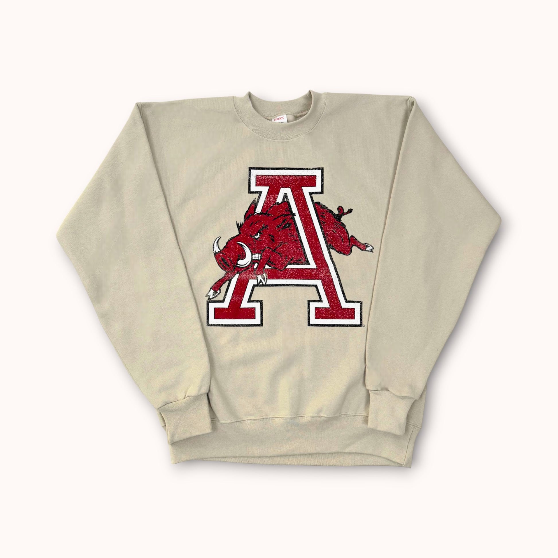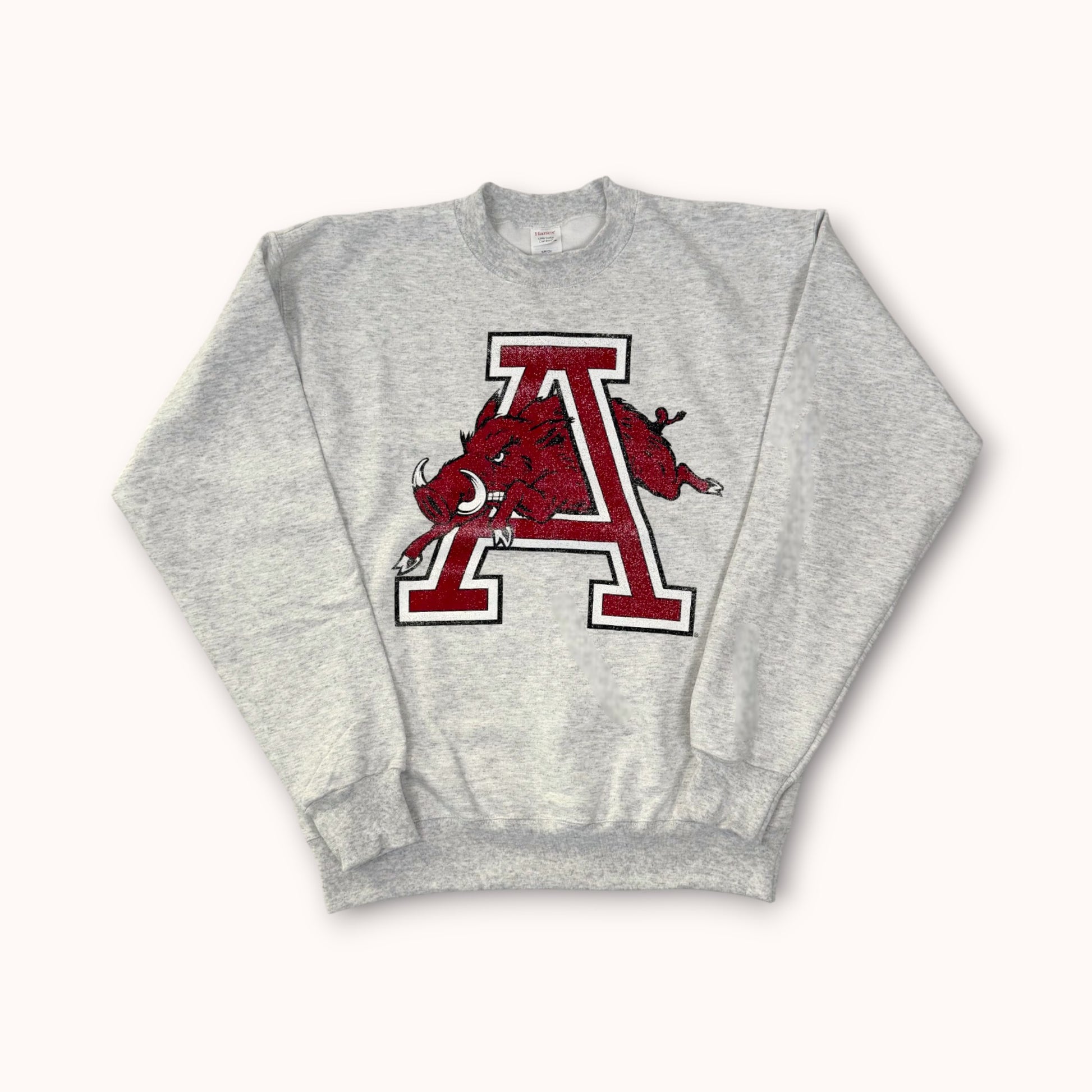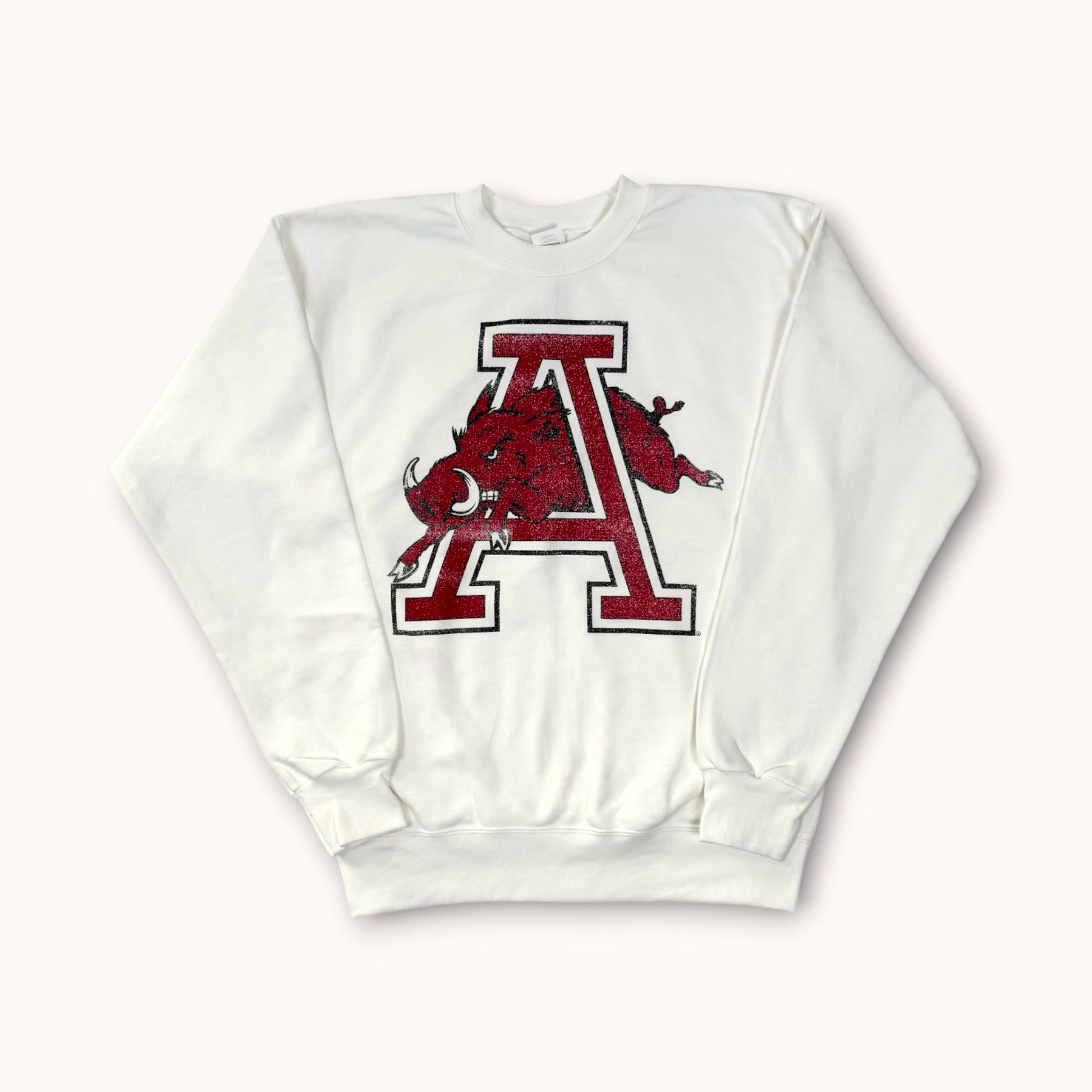 The Charger sweatshirt captures that unstoppable momentum with the classic Hog Jumping Through the A — a timeless mark of Razorback spirit on the move.