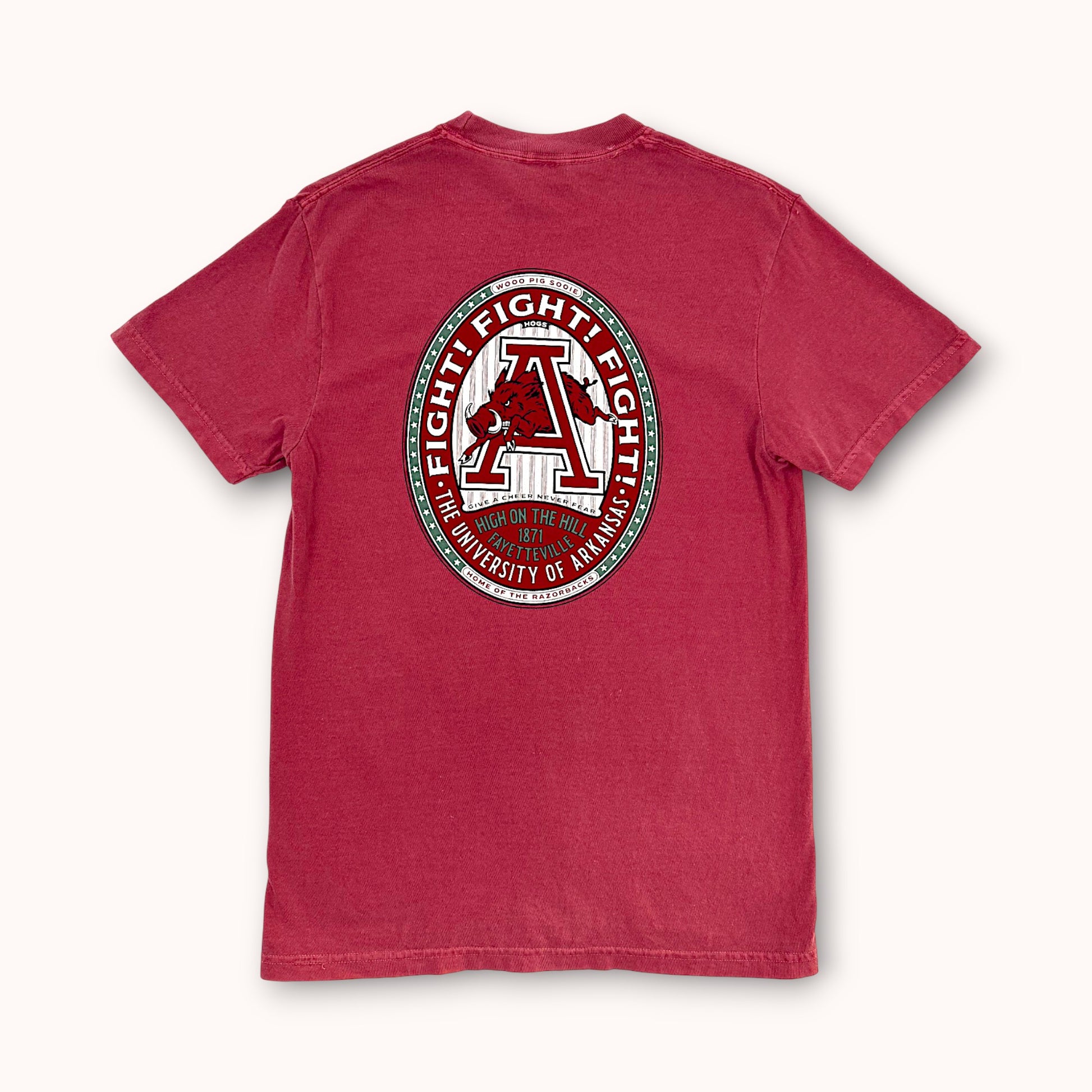 All art and design is created by us right here in Fayetteville, AR. We print all of our products in house as well with our top-tier production team to ensure everything meets our standards. Arkansas born, Arkansas made.
