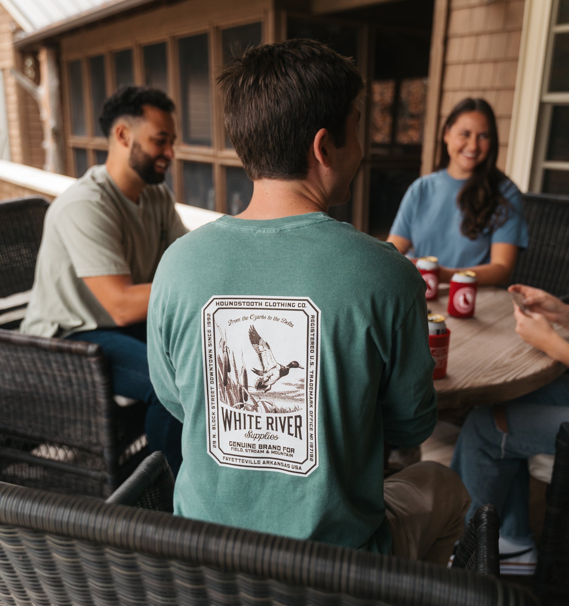 This design honors the timeless connection between hunter and habitat—the vast, open fields dotted with decoys, the whisper of wings overhead, and the vibrant life hidden in the marsh grasses. Wearing Field Duck means embracing the spirit of Southeast Arkansas waterfowl hunting: a soulful communion with a landscape that is both wild and sacred, where every hunt is a chance to become a part of a living, breathing tradition.