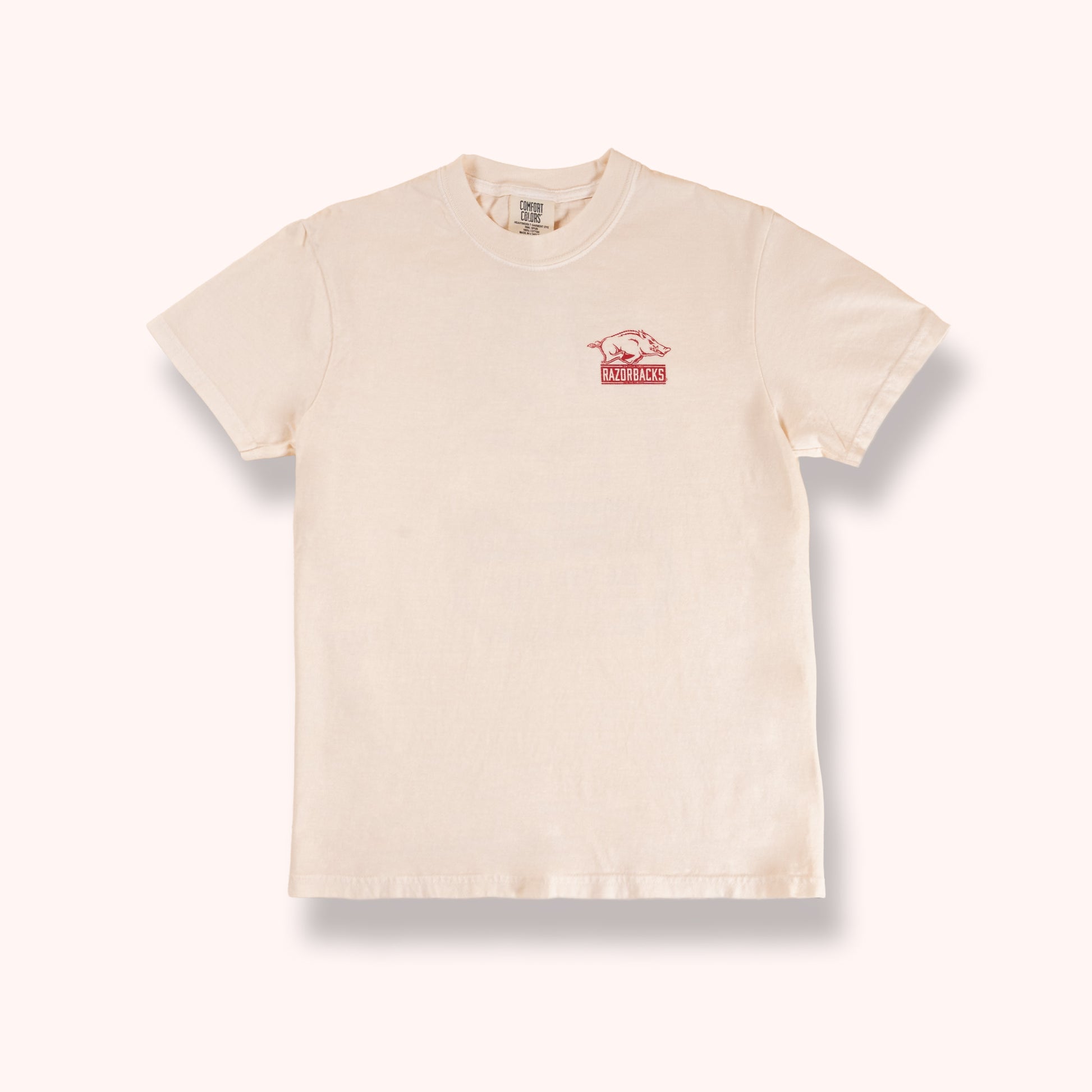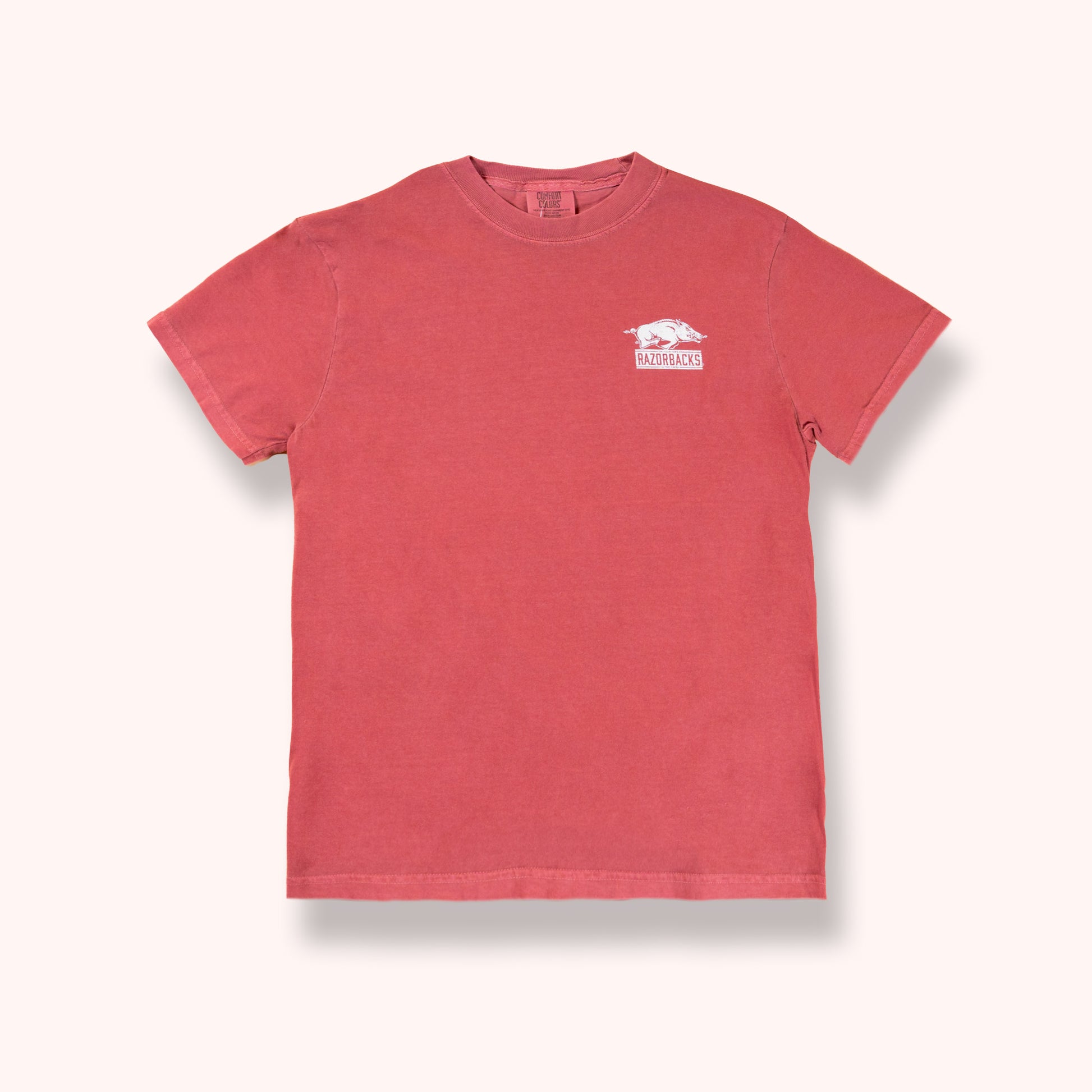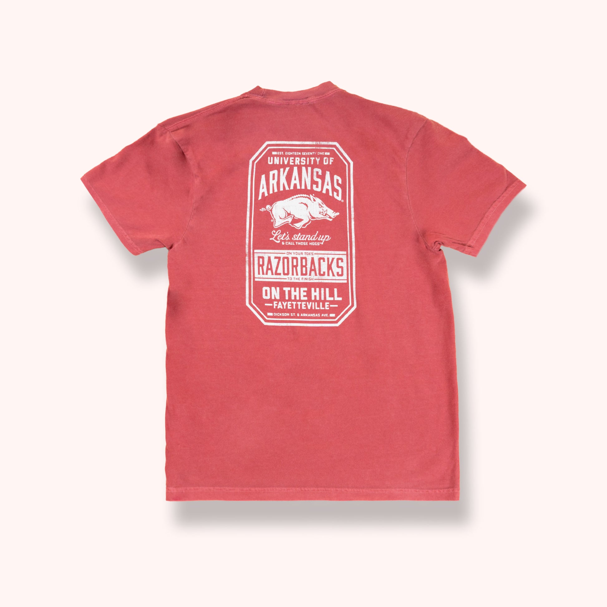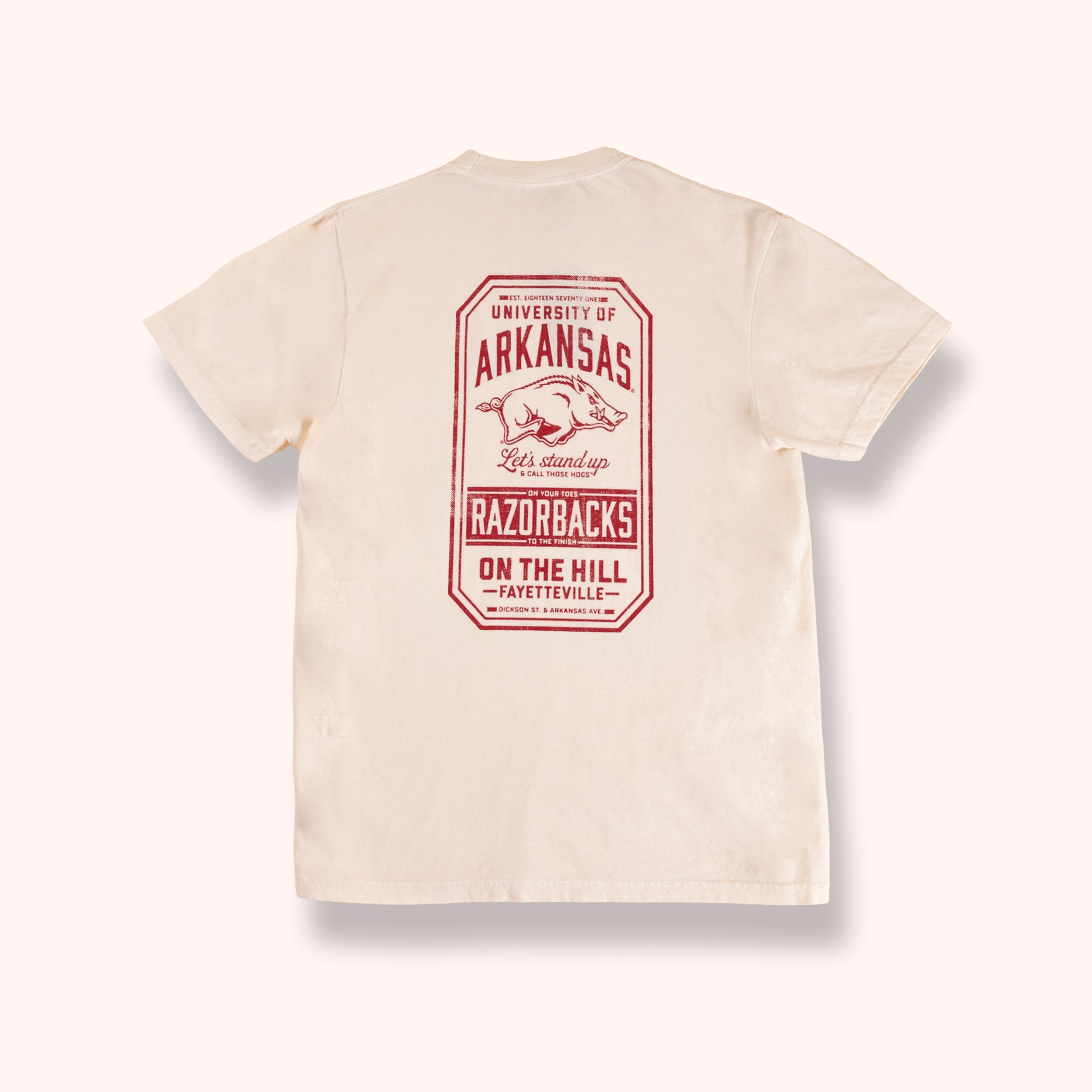 Earlybird awakens the timeless spirit of Razorback pride through a distinctly Houndstooth lens—a classic, unmistakable design with enduring style. At its center, the fierce Tusk logo stands boldly, framed by evocative phrases like “On The Hill” connecting fans worldwide to the heart of Razorback tradition. This design celebrates the dawn of every game day and the promise of new victories, blending heritage, global community, and local passion into one sophisticated statement. Perfect for those who rise early, lead with pride, and carry Razorback spirit with unshakable confidence, Earlybird is a tribute to the timeless legacy and worldwide reach of Arkansas athletics. Famously purchased by Robert Downey Jr. at our Downtown Fayetteville store in the summer of 2024.