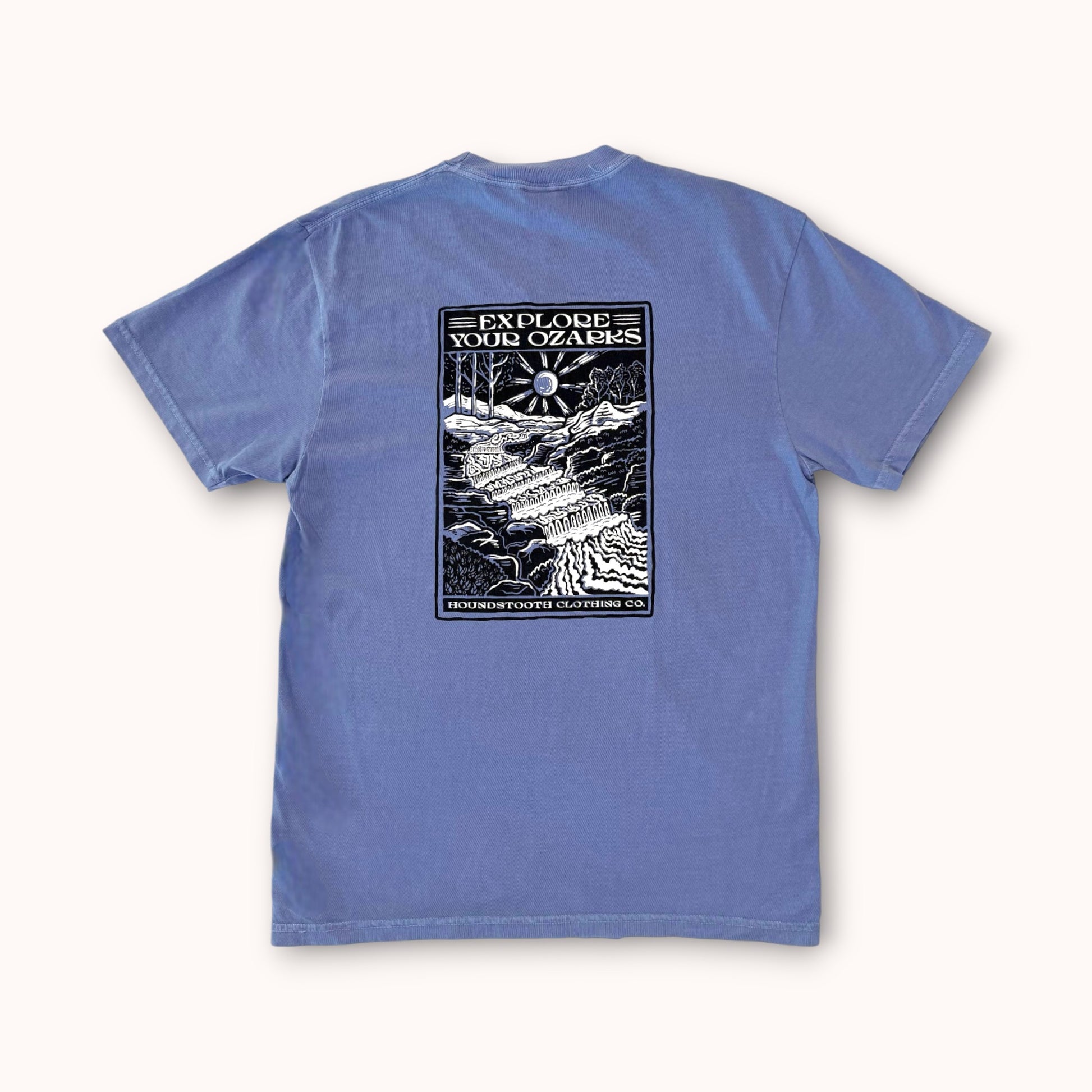 Immerse yourself in the tranquil beauty of the Ozark wilderness with EYO Falls—a serene snapshot of nature’s gentle power captured in the rolling river and calm rapids that weave through the rugged landscape. As part of the exclusive EYO mini-collection, this design pays homage to the flowing waterways that define the region’s wild spirit and timeless charm. Picture yourself standing on smooth river rocks, listening to the soothing rush of water while the surrounding forest whispers the stories of the Ozarks. Crafted for comfort and inspired by the natural grace of these peaceful rapids, EYO Falls invites you to carry a piece of Arkansas’s breathtaking outdoors wherever your adventures take you. Wear the calm current of nature, style, and heritage—embrace the flow with EYO Falls.