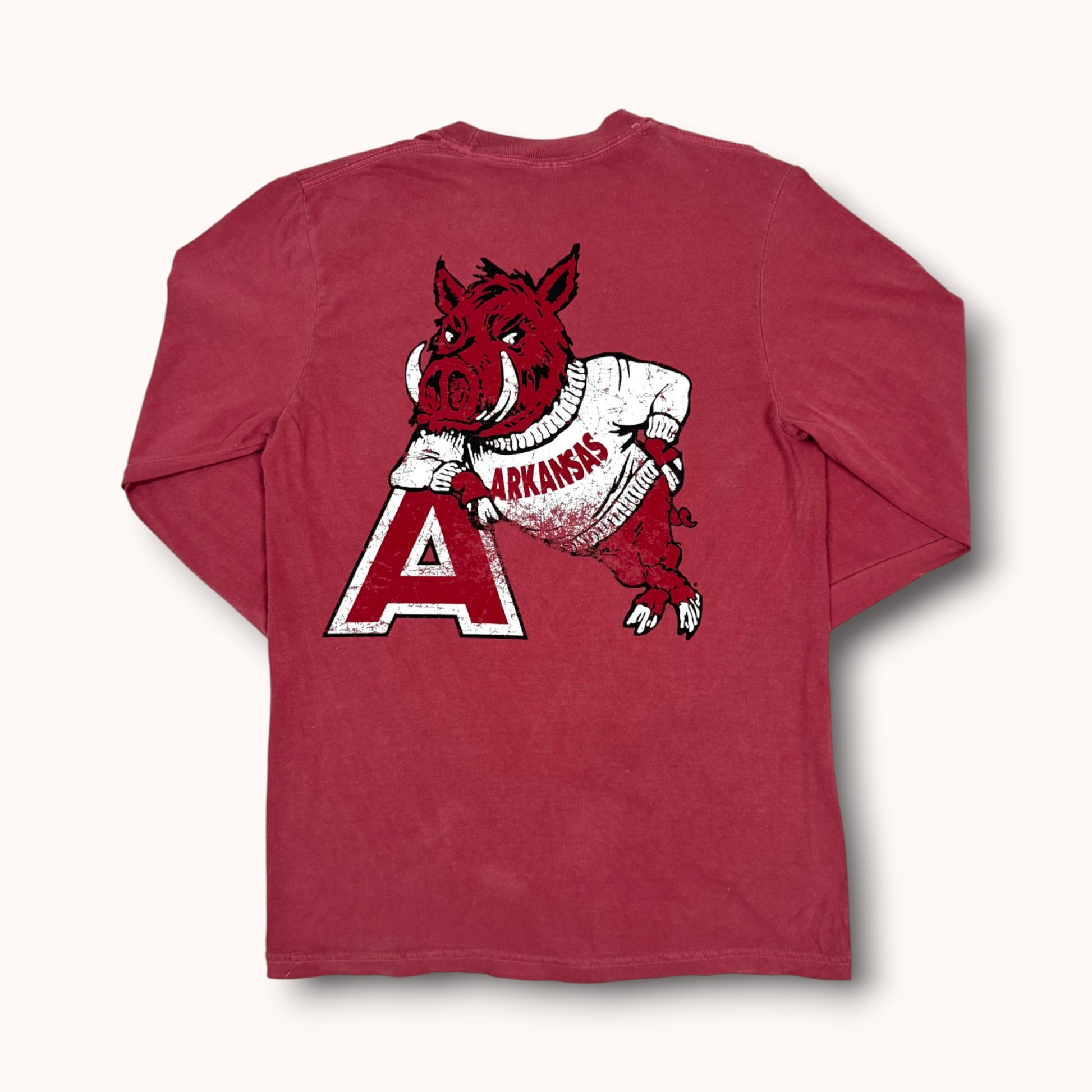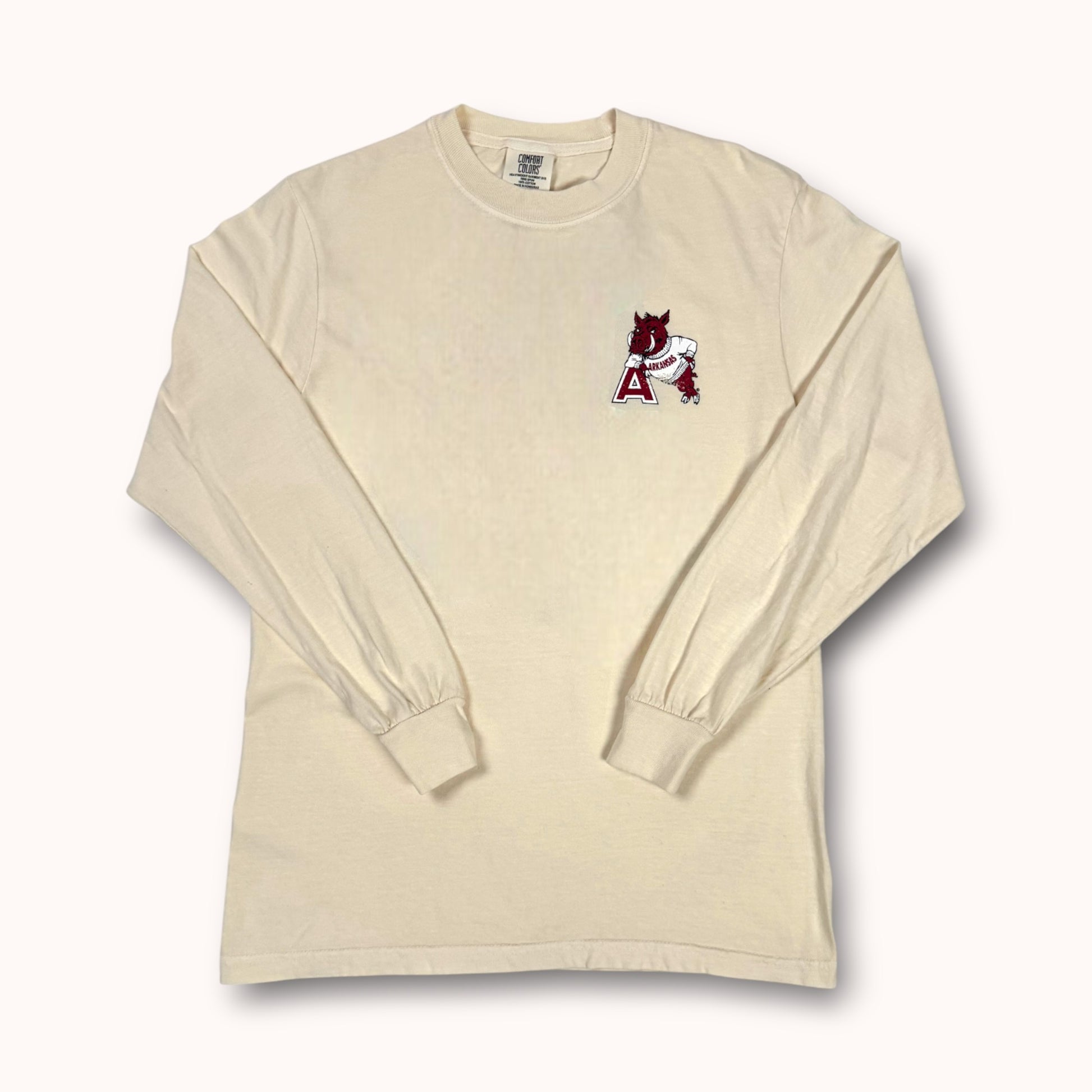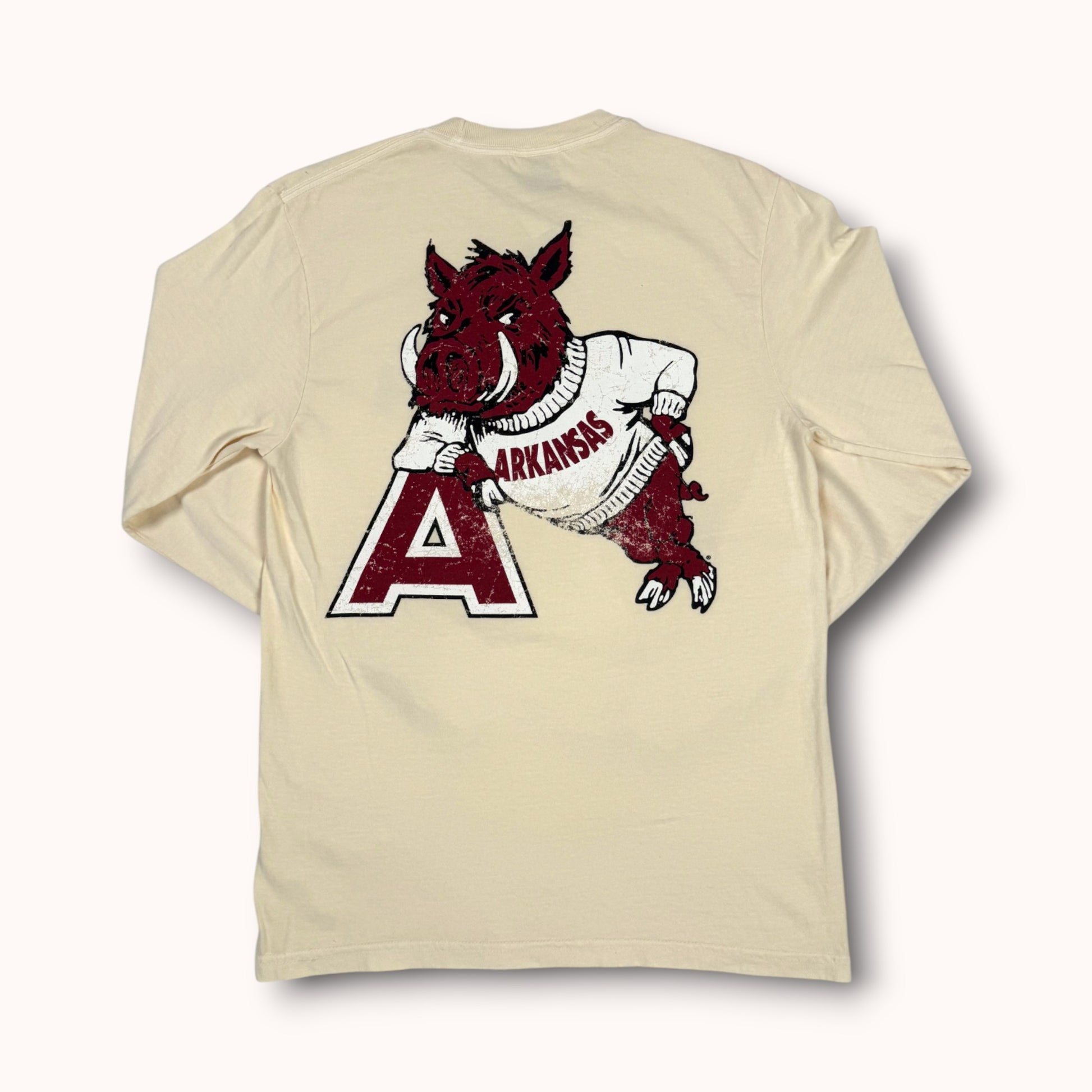 Step into the golden days of campus spirit with Leaner—a vintage design that instantly transports you back to the buzz of walking into a Houndstooth store on game day during football season. The timeless logo of the collegiate Razorback, proudly clad in a cozy sweatshirt and leaning with swagger on the iconic Arkansas "A," capturing both tradition and playful charm. This logo radiates the same warmth, camaraderie, and game-day excitement that fills every corner of Houndstooth in the fall—the energy of anticipation, the sea of cardinal and white, and the unmistakable feeling that you’re right where you belong. Put on Leaner and bring that nostalgic, spirited energy with you wherever you go—a timeless tribute to Razorback pride and the cherished rituals of autumn Saturdays in Fayetteville.