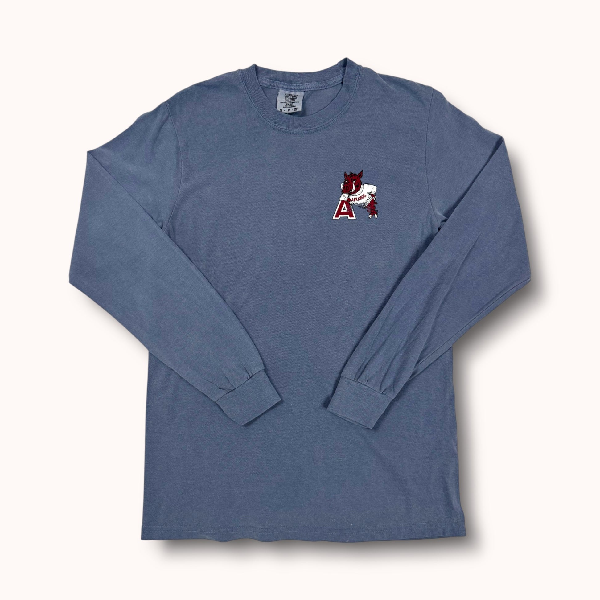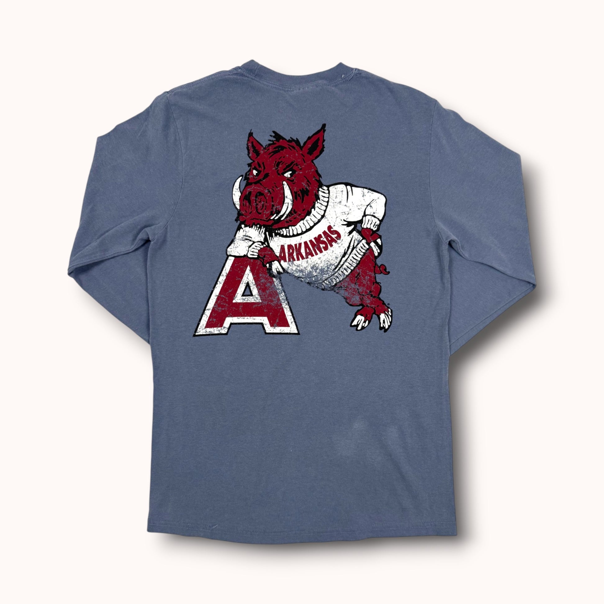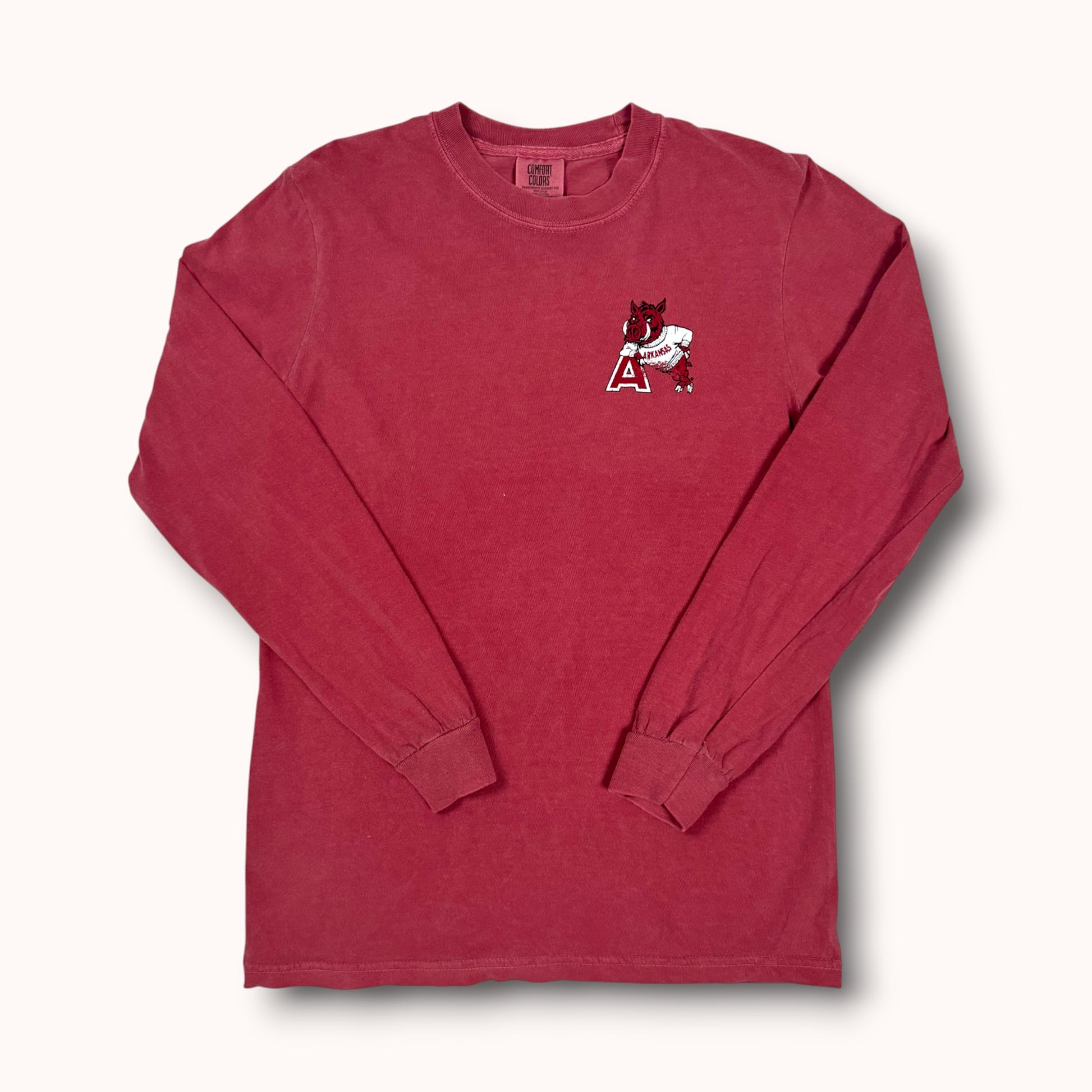 Step into the golden days of campus spirit with Leaner—a vintage design that instantly transports you back to the buzz of walking into a Houndstooth store on game day during football season. The timeless logo of the collegiate Razorback, proudly clad in a cozy sweatshirt and leaning with swagger on the iconic Arkansas "A," capturing both tradition and playful charm. This logo radiates the same warmth, camaraderie, and game-day excitement that fills every corner of Houndstooth in the fall—the energy of anticipation, the sea of cardinal and white, and the unmistakable feeling that you’re right where you belong. Put on Leaner and bring that nostalgic, spirited energy with you wherever you go—a timeless tribute to Razorback pride and the cherished rituals of autumn Saturdays in Fayetteville.