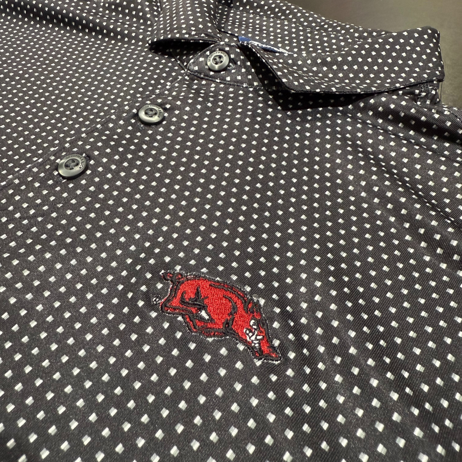 Suit up in the Mini Tusk Shadow Check Polo and show Razorback pride with a polished touch.