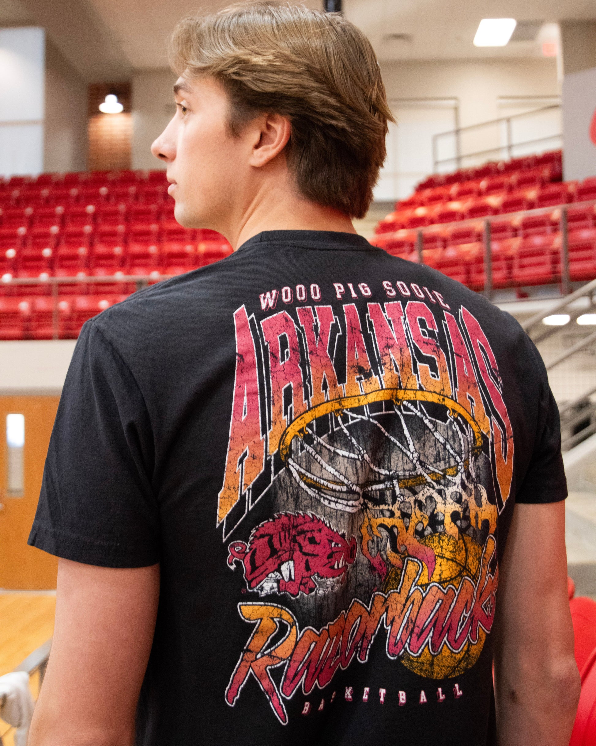 The dynamic artwork captures motion and grit, turning a simple tee into a statement of Razorback loyalty and old-school edge. The nostalgic Slobbering Hog and retro type make it feel authentic to the era that defined a generation of fans. If you believe every swish deserves a little fire, this one’s ready for game day and beyond.