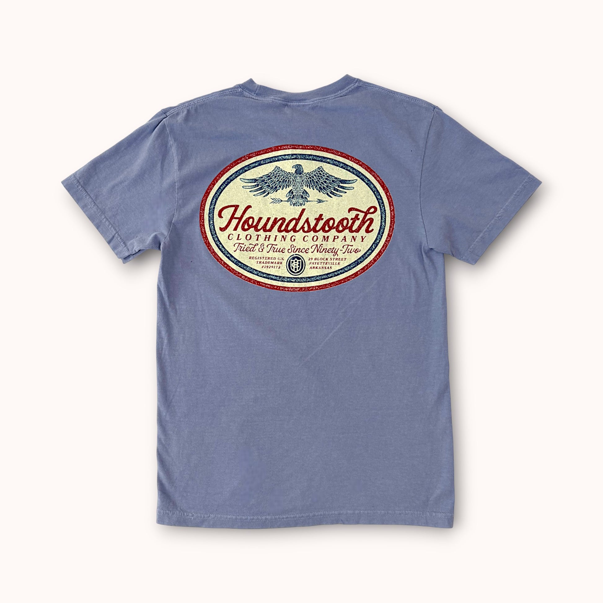 Embrace the timeless spirit of craftsmanship and tradition with Philly—a design that pays homage not only to Houndstooth’s proud legacy but also to a rich slice of American history. Featuring a vintage eagle seal inspired by classic U.S. iconography, this shirt connects you to the enduring values of resilience and independence that shaped the nation. The elegant "Houndstooth" script weaves across the design with effortless charm, while historical details—the address of our first store, the original U.S. Trademark number, and our steadfast motto, “Tried and True since Ninety-Two”—root this piece firmly in authenticity and pride. More than just apparel, Philly is a tribute to enduring spirit and heritage, blending classic Americana with the grit and passion of Houndstooth style. Wear it with pride, and carry a piece of history wherever you go.