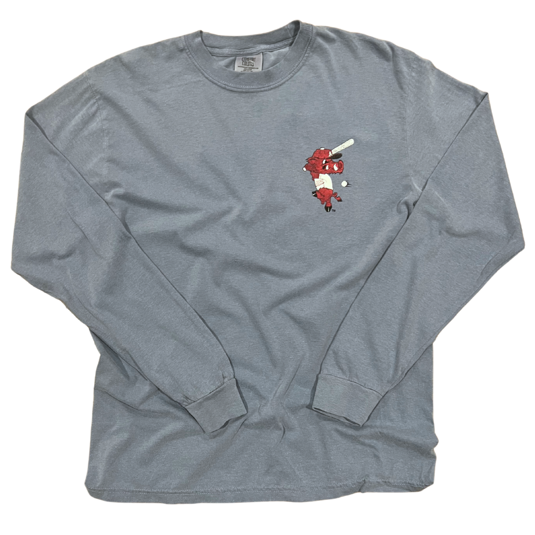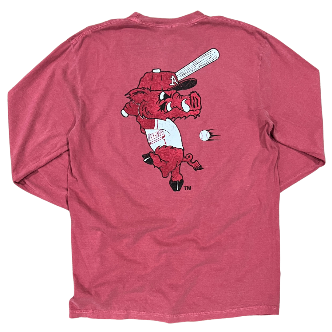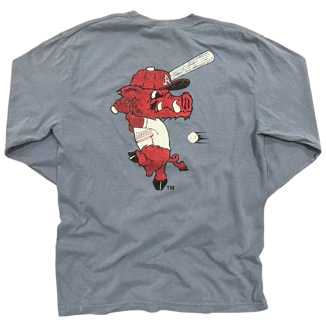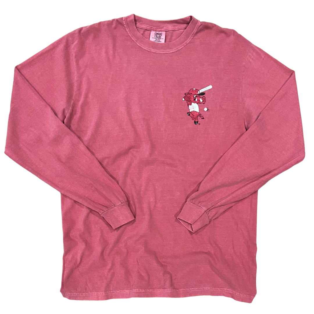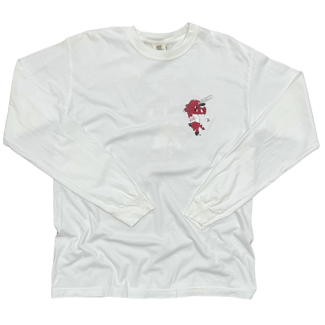 Step up to the plate in true Razorback style with our exclusive Ribby shirt, where the grit and grind of Arkansas baseball come to life through its most spirited mascot. Ribby isn’t just a logo—he’s the embodiment of Diamond Hogs tradition, originally brought to life by former Razorback player Larry Barton and beloved by generations of fans for his vintage charm and competitive fire. Whether he’s winding up for the perfect pitch or swinging for the fences, Ribby’s playful energy and fierce Razorback pride are woven into every thread of this shirt, making it the ultimate tribute for fans who want to celebrate the legend and legacy of Arkansas baseball. Wear it to the ballpark or around town, and let Ribby’s winning spirit lead the Hog Call for every Razorback victory.