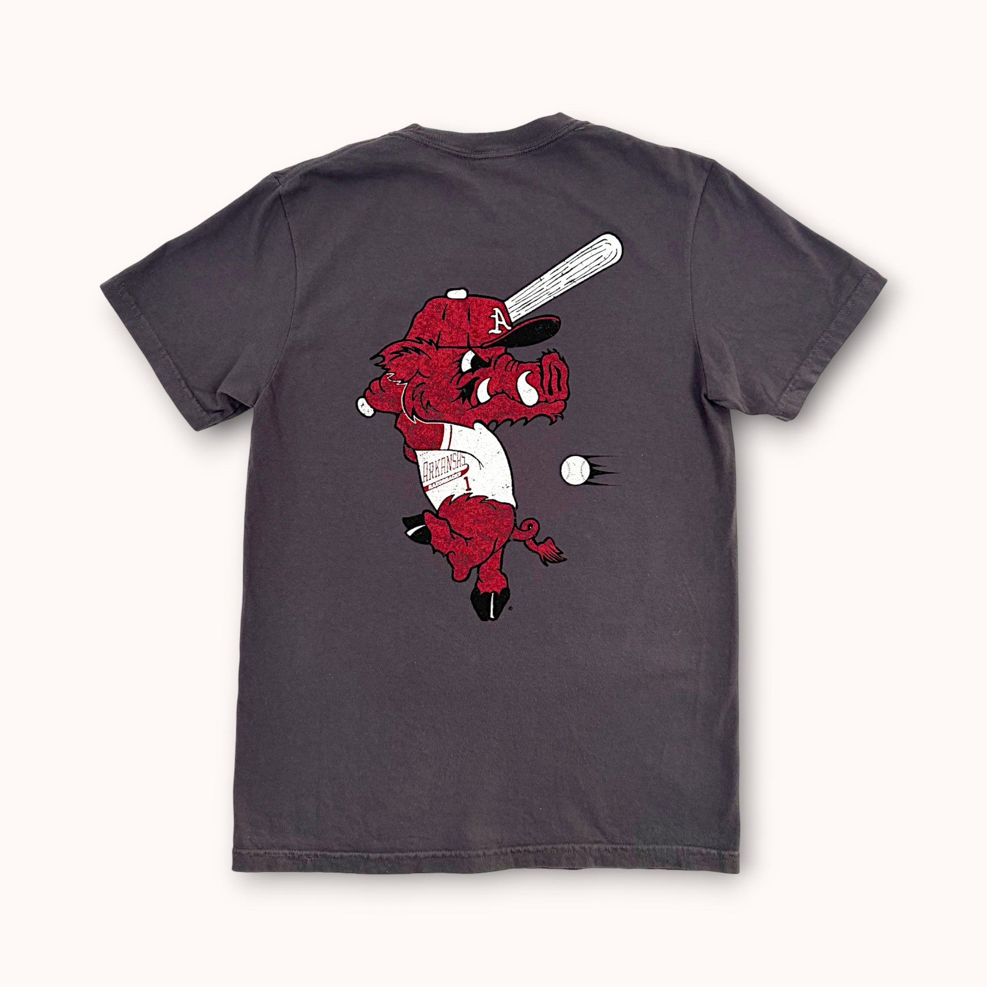 Step up to the plate in true Razorback style with our exclusive Ribby shirt, where the grit and grind of Arkansas baseball come to life through its most spirited mascot. Ribby isn’t just a logo—he’s the embodiment of Diamond Hogs tradition, originally brought to life by former Razorback player Larry Barton and beloved by generations of fans for his vintage charm and competitive fire. Whether he’s winding up for the perfect pitch or swinging for the fences, Ribby’s playful energy and fierce Razorback pride are woven into every thread of this shirt, making it the ultimate tribute for fans who want to celebrate the legend and legacy of Arkansas baseball. Wear it to the ballpark or around town, and let Ribby’s winning spirit lead the Hog Call for every Razorback victory.