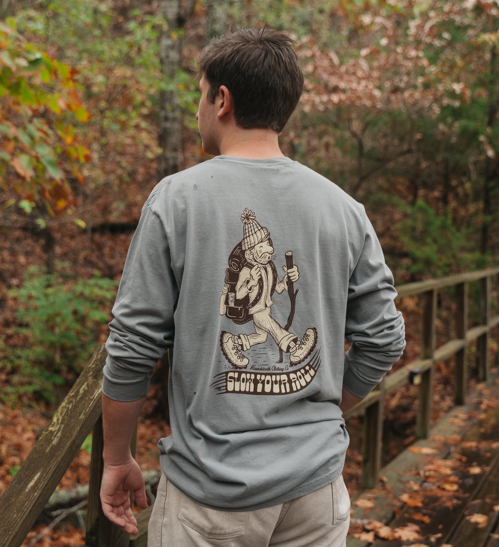 Slow Your Roll invites you to embrace the gentle rhythm of the natural world—a call to slow down, breathe deep, and reconnect with the earth in all its unhurried beauty. It’s the soft crunch of leaves beneath worn boots, the warm glow of sunlight filtering through ancient trees, and the soothing murmur of a winding creek that together create a sanctuary for the wandering soul. For the old hippie hiker, every step is a meditation, every breath a reminder that life’s true riches are found in patience and presence.