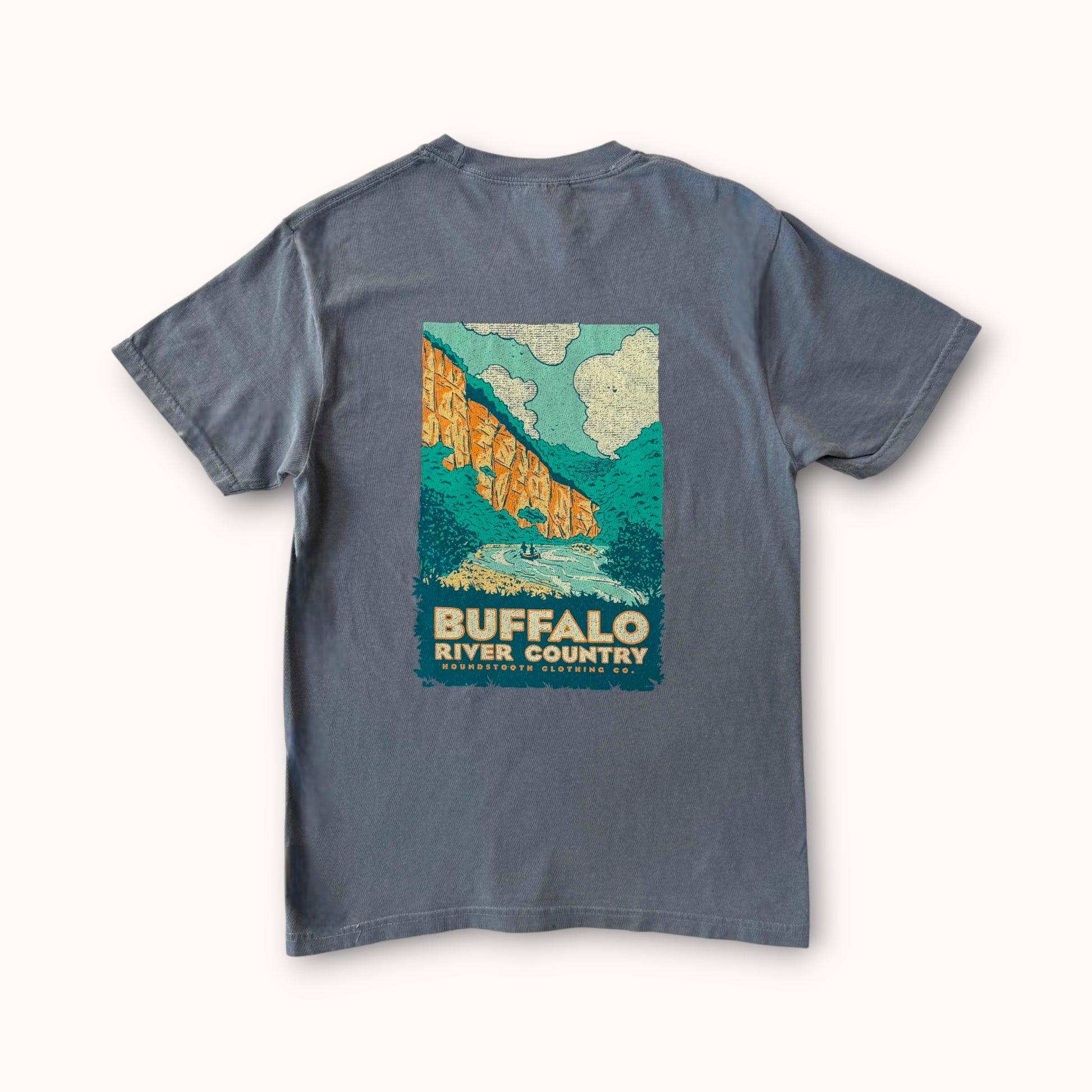 Steel Creek captures the awe-inspiring grandeur the Buffalo River’s iconic landscape, towering bluffs rising majestically over a sweeping horseshoe bend. Celebrate the expansive beauty of Arkansas’s rugged wilderness, where ancient cliffs soar skyward beneath a vast, vibrant blue sky. The view from Steel Creek reveals endless layers of cascading Ozark mountains and hills, framed by sunlit rock faces and the winding flow of the river below. It evokes the feeling of serenity, breathing in the crisp air and marveling at the untamed spirit of the Natural State. Perfect for those who cherish scenic floats, timeless nature, and the wild heart of the Buffalo River, Steel Creek invites you to carry a piece of Arkansas’s breathtaking outdoors wherever your adventures lead.
