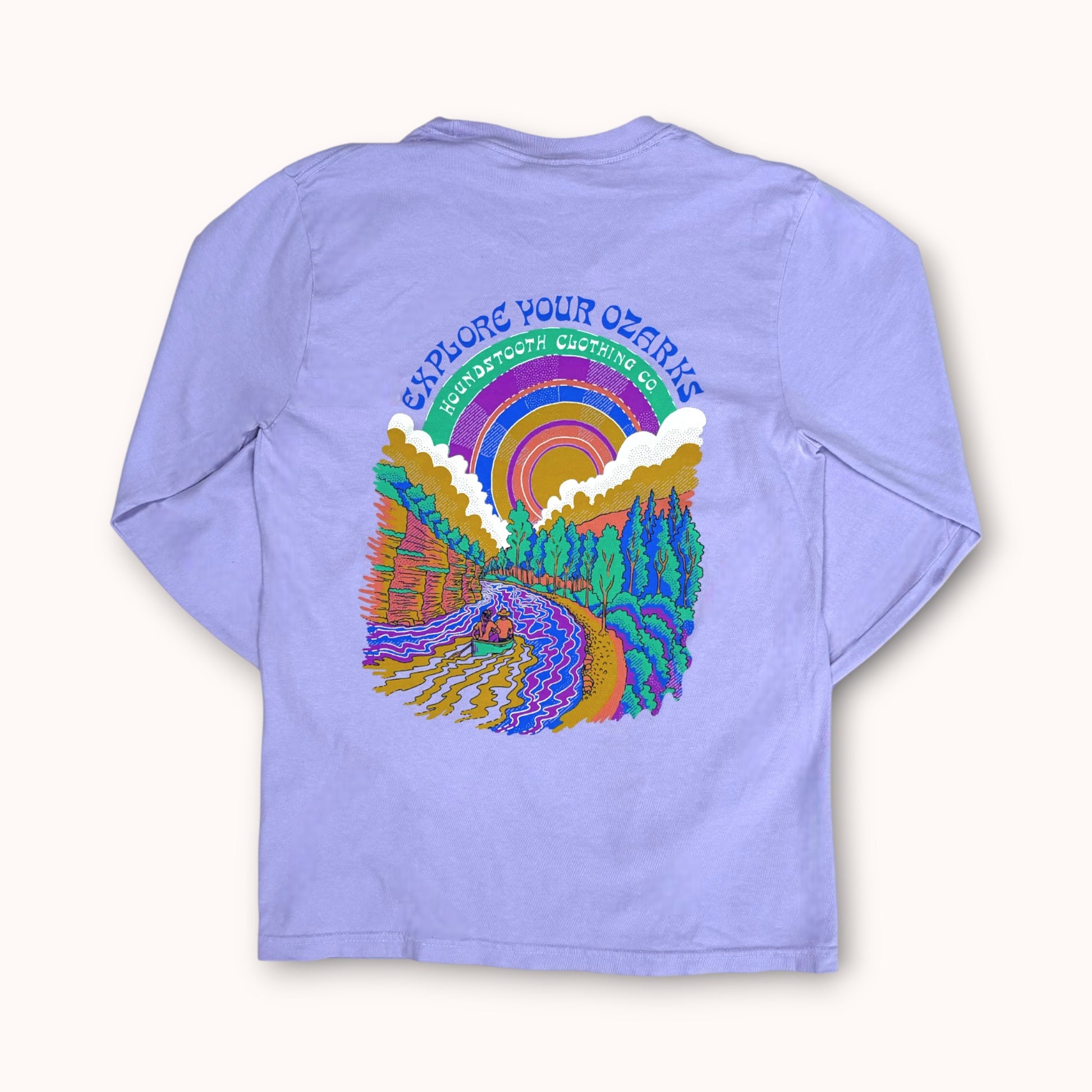 Sunset Bend invites you to glide gently along the tranquil flow of an Ozark river, where vivid colors and serene waters blend into a soothing celebration of nature’s beauty. This bright, colorful design captures the peaceful joy of a solitary canoe drifting downstream, framed by lush riverbanks and the warm glow of a setting sun. Made for lovers of vibrant design and the great outdoors, Sunset Bend evokes the gentle rhythms of Arkansas waterways—the perfect harmony of calm currents and radiant skies found in places like the Buffalo, Ouachita, or Kings Rivers. Whether you dream of quiet float trips in the heart of the Ozarks or simply cherish the spirit of adventure and natural splendor, Sunset Bend is a reminder to embrace the calm, vibrant moments that make every journey unforgettable.